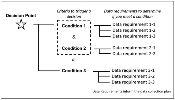 At the conclusion of COA development, staff should be able to produce a decision point wire diagram, deployment concept appendix, and sustainment concept appendix rather than waiting for the orders production step. These new products could accelerate decision advantage for the commander with a clear trajectory of the course of action. The decision point wire diagram is the visualization of the key data required to inform the commander’s decision (see figure 6). As decision points are identified through the planning process, planners should identify the data required to inform those decisions, where it would be collected from (system, organization, report, etc.), and how it would be visualized for the commander. This product should be incorporated into annex C—Operations, appendix 3—Decision Support Tools, along with the data collection plan and matrix.
